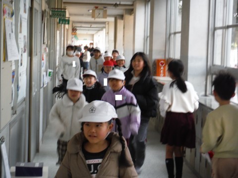 本日は,休み時間に不審者の侵入を想定した訓練を行いました。合図や放送があると,屋外で遊んでいる児童,廊下や屋内にいる児童ともに近くの教室に入りました。そして,次の指示があるまで静かに各教室で待ちました。不審者が確保された放送が入ると,自分のクラスに戻りました!!
