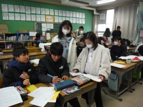 (上の写真)図書委員会の様子です。今日は,卒業・入学式の掲示物を作成していました。桜の花などのイラストを調べて描いていました。楽しみですね。(中の写真)体育委員会の様子です。今日は,みんなで遊ぶ遊びを決めていました。それぞれの学年にあわせたルールを考えていました。(下の写真)保健委員会の様子です。今日は,4月からのけが調べをしているそうです。けがの種類や人数の集計をしていました。どんな場所でけがが多いのかを知ることができてよいですね。