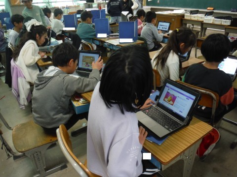(上の写真)今日は,テストが終わった後の時間です。それぞれがタブレットを開き,タイピング練習などをしていました。(下の写真)こちらでは図工の時間です。模様を刷った版画に,さらに魚や虫,小鳥,お花などポイントとなる絵を刷っていました!!それぞれの素敵な作品ができたようです。