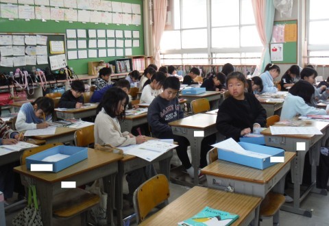 (上の写真)書写の時間の様子です。年賀状と書初めを硬筆で書きました。文字の形の中心に気をつけてかきました。(中の写真)算数の時間の様子です。今日は,図を使って文章問題を解きました。テープ図に書き込み,問題を整理していましたよ。(下の写真)音楽の時間の様子です。今日は,鍵盤ハーモニカで「メヌエット」を弾きました。まずはそれぞれのパートの練習をし,回数を重ねるごとにそろっていました!!