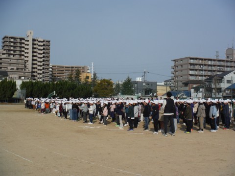 3月の朝礼の時間の様子です。今日は,運動場で行いました。まず,校長先生からのお話がありました。友だちや身近な人との人間関係についてのお話がありました。そして,生徒指導担当の先生からは,3月の生活目標である「ありがとうの気持ちをもって過ごそう。」についてと年間の生活目標である「ろうか・かいだんを安全に歩こう。」についてのお話がありました。その学年でやるべきことを学んだり,身につけたりしましょう!!