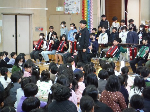 6年生の代表者から,在校生に向けて「ありがとう」と感謝の言葉をおくりました。最後は,みんなで「栄光の架け橋」を全員で合唱するとともに,先生方からも生演奏のプレゼントありました。そして,名残り惜しいですが,6年生の退場です!!