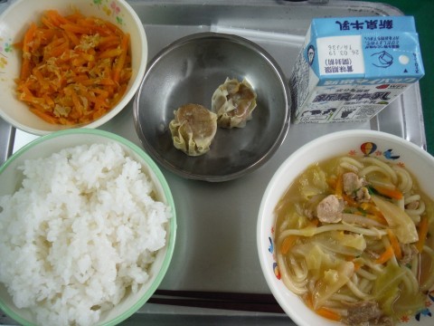 今日の給食の献立です!!みんなに人気のあるラーメンですよ。