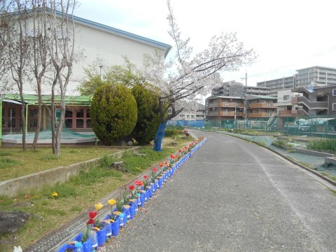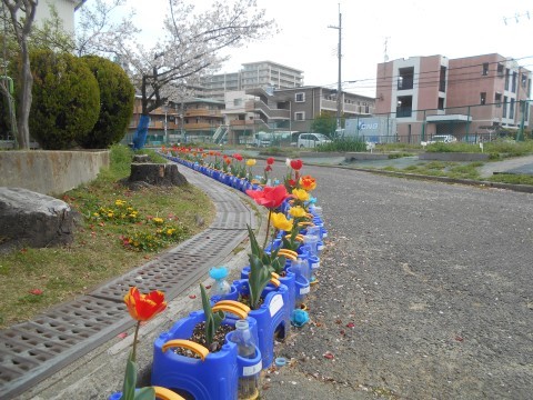 その名の通り,2年生が1年生のときに植えたであろうチューリップがあったり,地域のボランティアの方が育ててくれている花が並んでいるロードです。