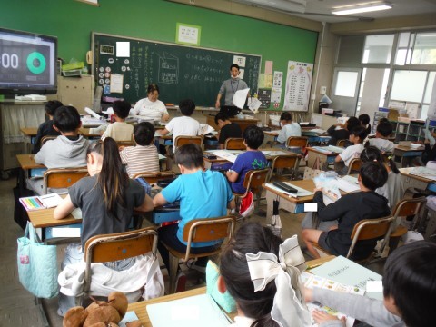 (上の写真)算数の時間の様子です。今日は,大きな数を10倍したり,10分の1したらどのように位がかわるのかについて考えました。(下の写真)外国語活動の時間の様子です。今日から外国語活動がはじまりました。新しいファイルづくりからスタートです。どんな勉強をするのかな。