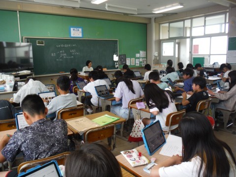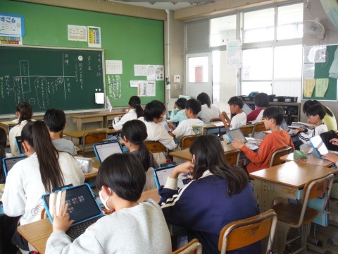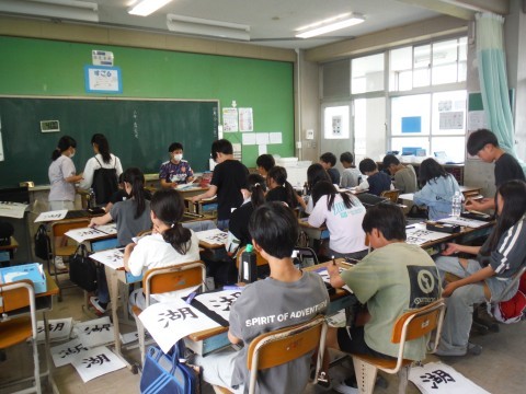 (上の写真)書写の時間の様子です。今日は,「湖」という文字を毛筆で書きました。文字のバランスが難しいですね。(中の写真)国語に時間の様子です。2人の登場人物の心情の変化等について自身で探っていました!!(下の写真)家庭科の時間の様子です。今日は,茶の湯のことについて調べました。調べたことを,自由にまとめていました。