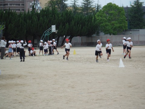 (上の写真)こちらでは,4月末に実施予定の校外学習について,グループで決めごとをしていました!!4年生になってはじめてですね。とっても楽しみです。(中の写真)算数の時間の様子です。今日は「10×6」の答えの求め方について考えていました。2年生で習った九九とたし算を使った式に表していました。(下の写真)体育の時間の様子です。しっかり準備体操をした後に,後ろ向きで走ったり,座った姿勢からスタートしたり様々な走り方をしていました!!
