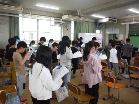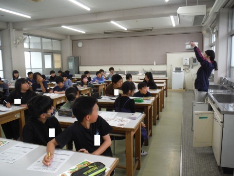 (上の写真)算数の時間の様子です。今日は,立体の体積について考えていました。1立方センチメートルのブロックを使いながら探りました!!(中の写真)家庭科の時間の様子です。今日は,家庭科室にある用具にはどんなものがあるのか,どこに用具がしまってあるのかについて,みんなで確認していました!!(下の写真)音楽の時間の様子です。ちょうど,「ビリーブ」の歌を歌っていました。どのように歌ったらいいのかをみんなで考えていました!!