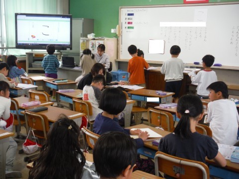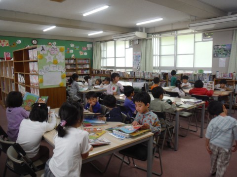 (上の写真)国語の時間の様子です。今日は,ひらがなの「こ」を習いました。「こ」がつく言葉をたくさん集めることができました!!(中の写真)生活科の時間の様子です。今日は,あさがおの鉢植えの準備をしていました。来週に植えるそうです。楽しみですね。(下の写真)図書の時間の様子です。学校図書館での本の返却・貸し出しにも慣れ,選んだ本を静かに読んでいました。おもしろい本はありましたか。