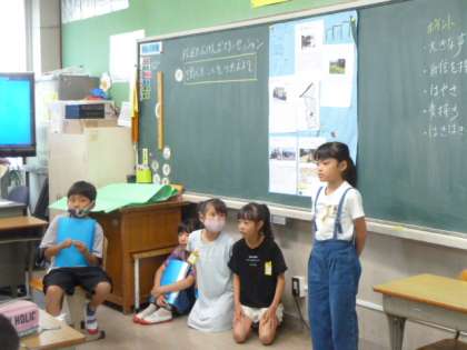 みんなで声を合わせて発表するところや、個人で発表するところなど、グループごとに発表の形を工夫している様子がわかりました。クイズを交えながら発表するグループもあって、聞いている子どもたちからたくさんの手が挙がっていました。