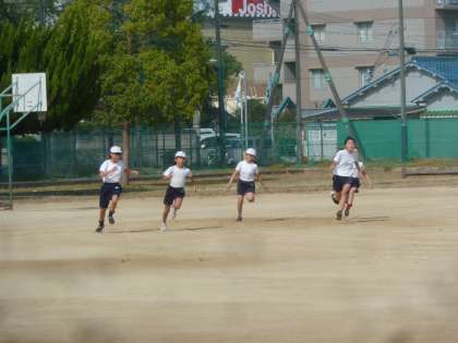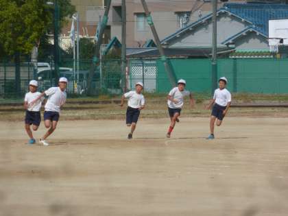 写真は、徒競走の様子です。高学年ともなると走る姿に迫力があります。本番が楽しみですね。