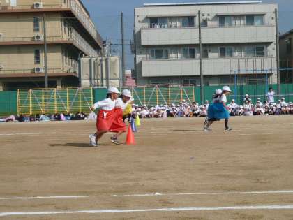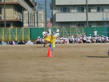 プログラム3番 3年生による「デカパン競争」の様子です。