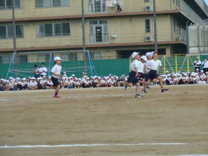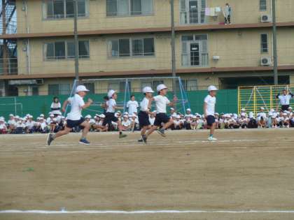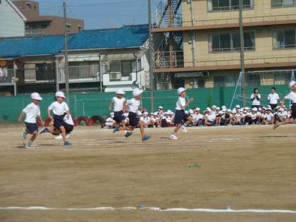 小学校に入って初めての体育参観です。保護者の皆さんに見てもらおうと張り切って走っていますね。