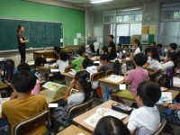 (上の写真)算数の時間の様子です。4の段の九九の式をみんなで確認していました...