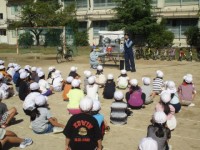 1年生は歩行練習をしました。横断歩道の渡り方,車の近くの通り方,常に「右・左・右...