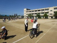4年生は,自転車に乗って実技練習をしました。歩行と同じように,安全確認が大事です...