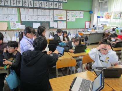 1年間学習した中から選んだテーマについて、パワーポイントでまとめています。授業参観で発表しますので、いつも以上に気合も入っています。