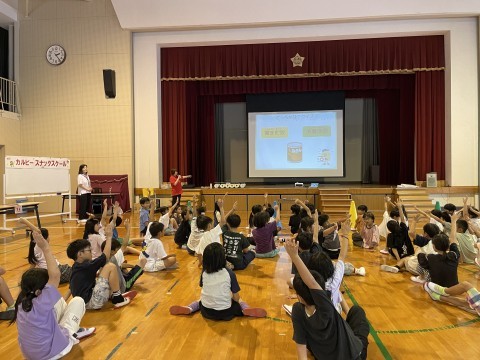 お菓子メーカーの方に来ていただき、おやつの食べ方について学びました。
