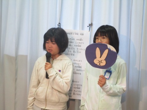 校長先生のお話と自主学習名人(5年生)の紹介がありました。