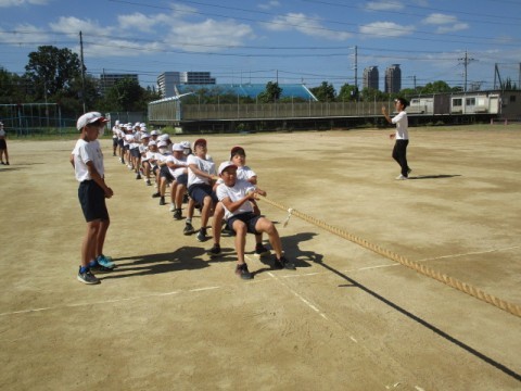 連合運動会では,個人種目と2チームに分かれて綱引きにも出場します。