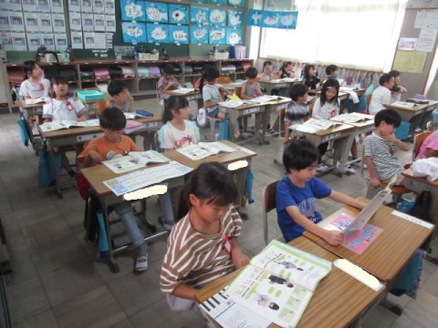 トライアングルは持ち方・叩き方によって,音色が変わることに興味深々でした♪