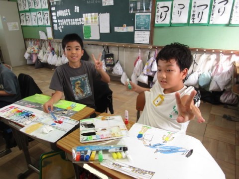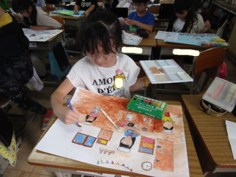 絵の具で色をつけて,だんだんと仕上がってきています。