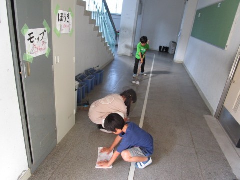 廊下に落ちている水を自主的に掃除をしているステキな人も見つけました。