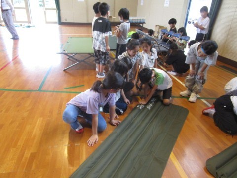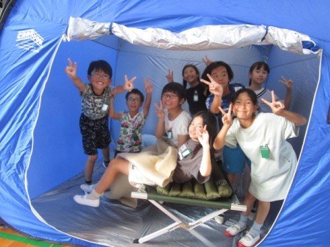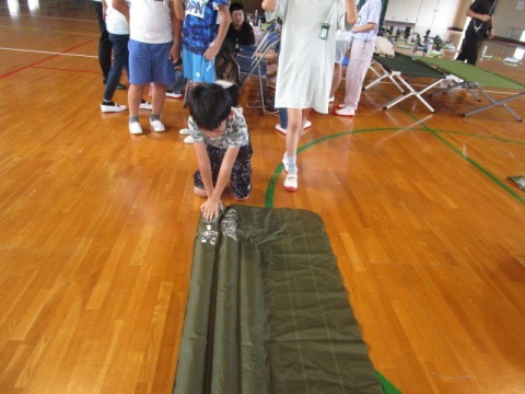 自分たちができる災害への備えだけでなく,避難所開設時の簡易ベットやテントなどを設置しました。