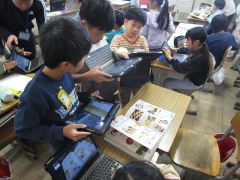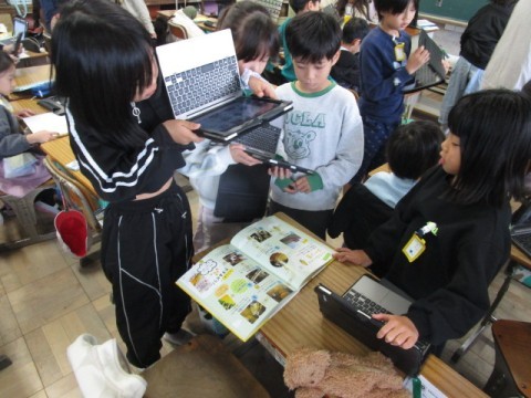 本やインターネットなど,タブレットを活用して学習を進めています。