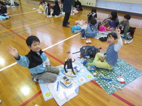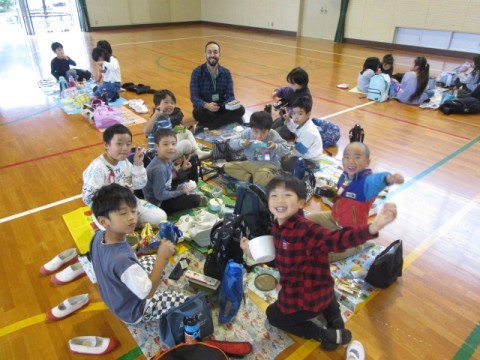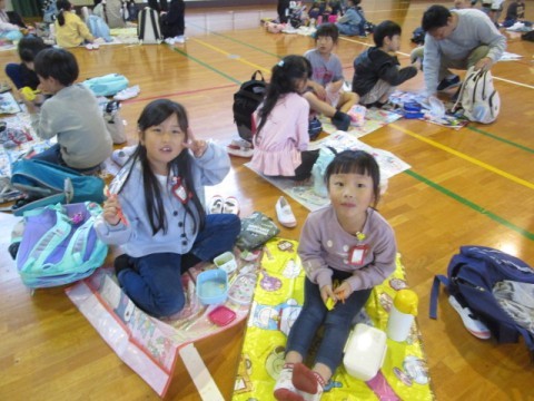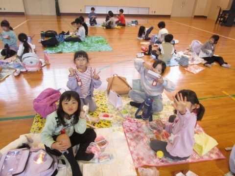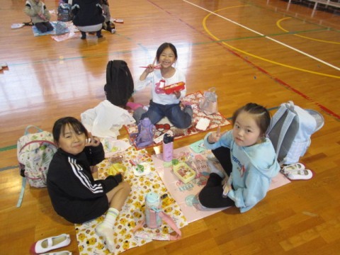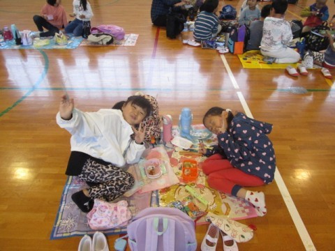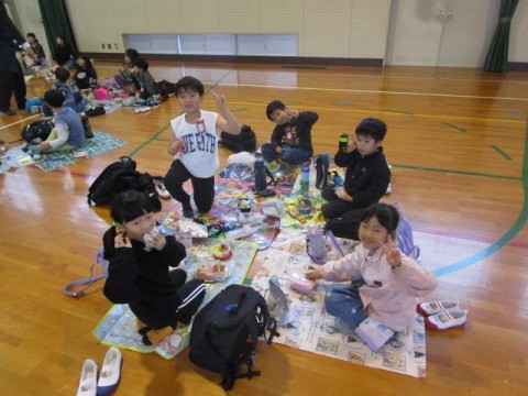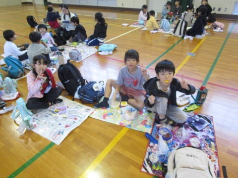 1年生 お弁当タイム 公開日 2025/10/31 更新日 2025/10/31 1年生 あいにくの雨で,遠足は中止となりましたが,今日は体育館で学年みんなでお弁当を食べました。楽しそうな笑顔がいっぱいです。 +7 1年生