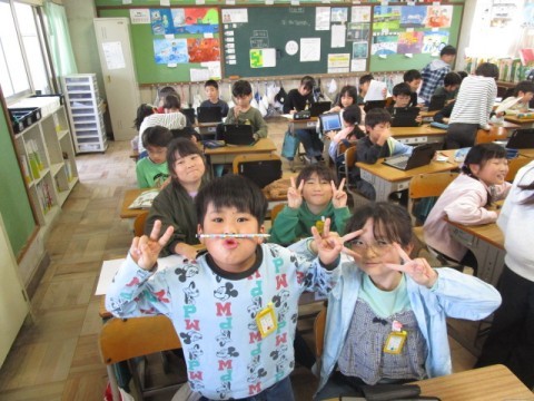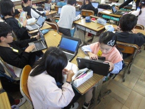 図書館・消防署・スーパーなど,見学したことをグループでまとめています。