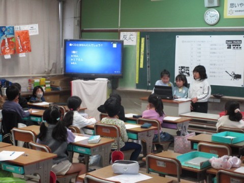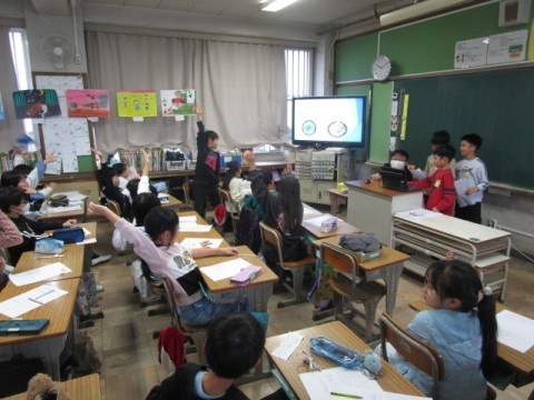 総合では,勉強したことをパワーポイントにまとめて,クイズを出しながら楽しく発表していました。