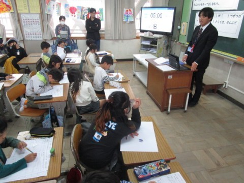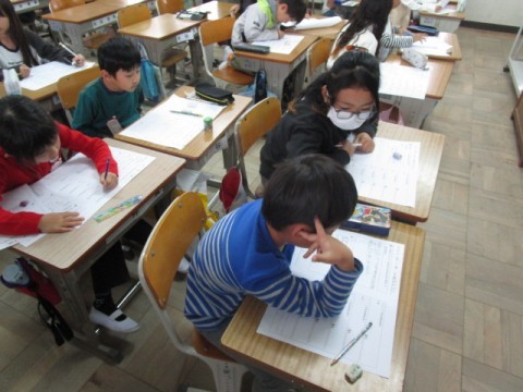 算数では,今まで学習したかけ算の問題づくりをして,ペアで問題を出し合いました。