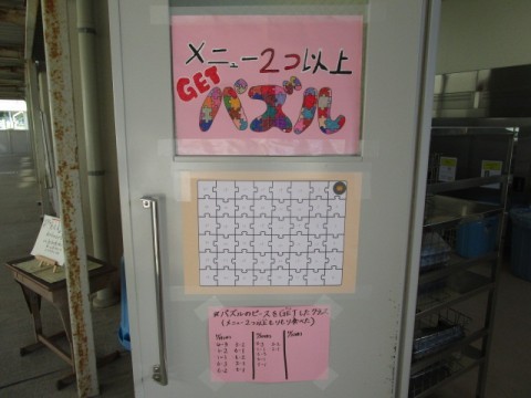 メニュー2つ以上完食で,パズルのピースをGETできます。