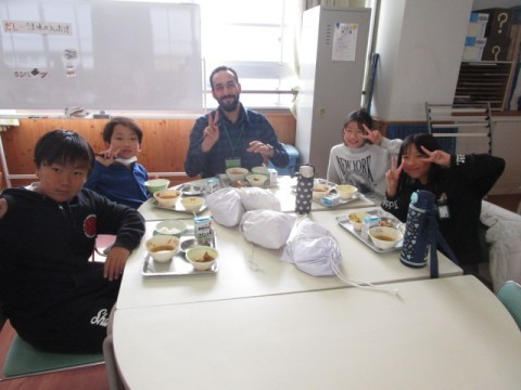 今日はランチルームで給食を食べました。