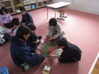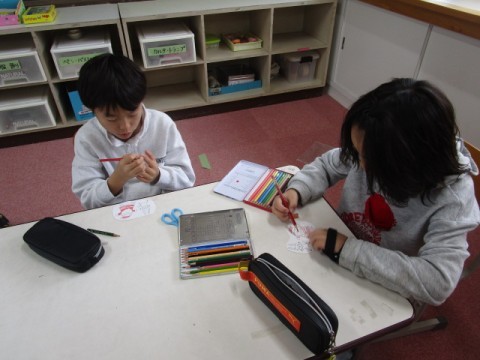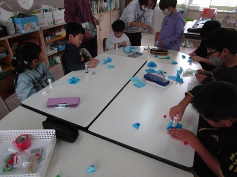 サンタさん,雪の結晶など,クリスマス飾りをたくさん作りました。