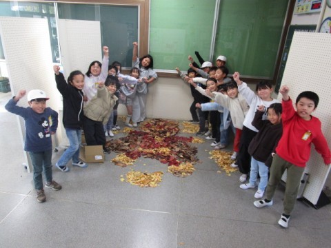 木枯らしが吹き始め,校庭の木々から色とりどりの葉が落ちています。
