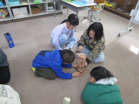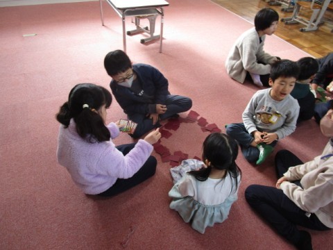 坊主めくり・カード合わせ・ジェンガなど,ひまわり学級の友だちで楽しく遊んでいます。