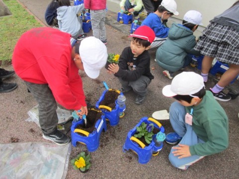 これで全員そろったので,ますます校庭にお花でいっぱいになりました🌼