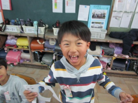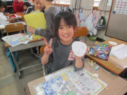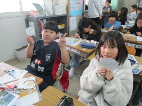 「似てるかな?」と,友だちと見せ合いっこしていました。