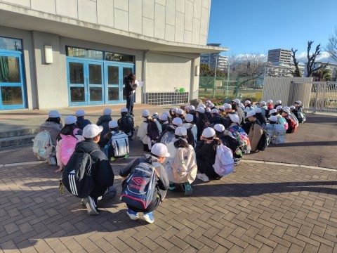 学校には午後1時に戻り、芝生広場でお弁当をいただきました。