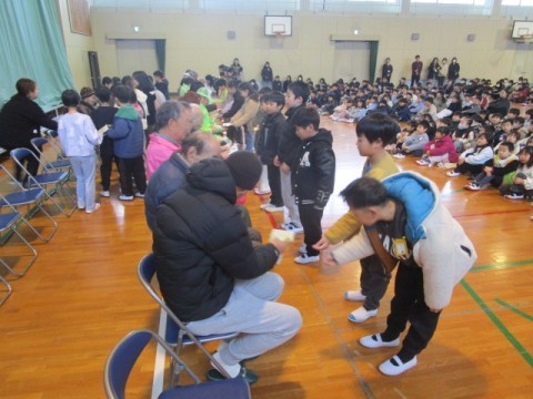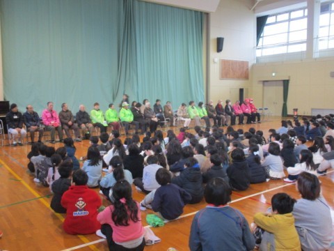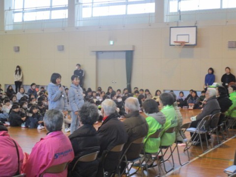 子どもたちからは,校長先生や児童会からのお礼の言葉,3年生が作ったコースター,全校児童からの歌のプレゼントをしました。