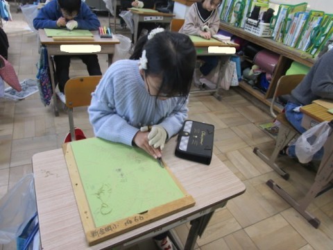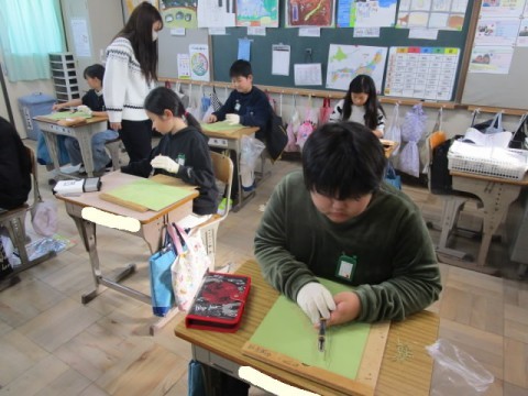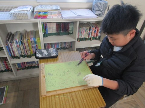 だんだんと使い方にも慣れてきて,曲線など下書きを上手に彫ることができていました。