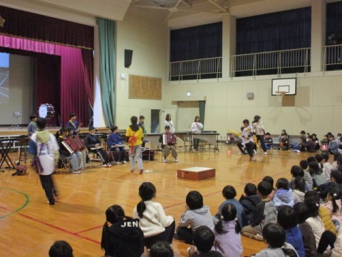 ファイナルコンサート3 公開日 2026/02/02 更新日 2026/02/02 6年生 3組の合奏の様子です。始める前にみんなで円陣を組んで気合を入れ,最初と最後には曲名にかかわる演出もありました。 +3 6年生