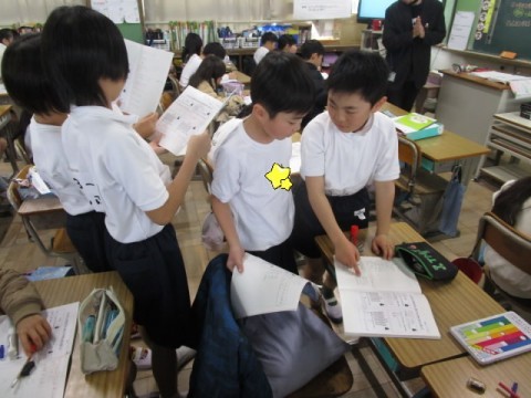 友だちと教え合いながら,今まで学んだ方法で答えを考えました。