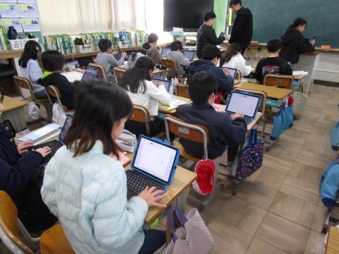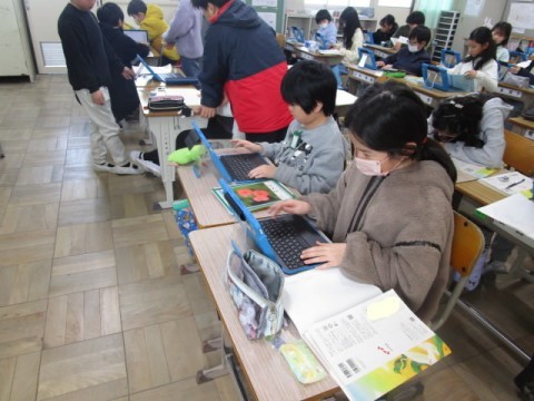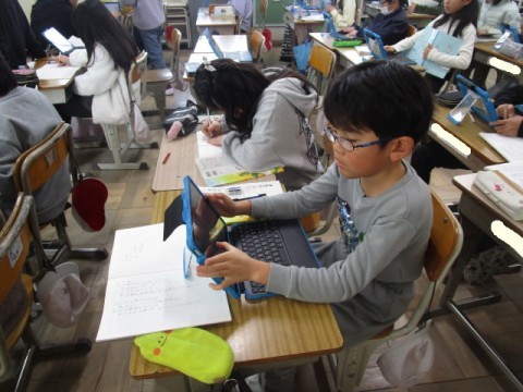 さすが4年生は,ノートを見ながらタブレットにすらすらと入力できていました。