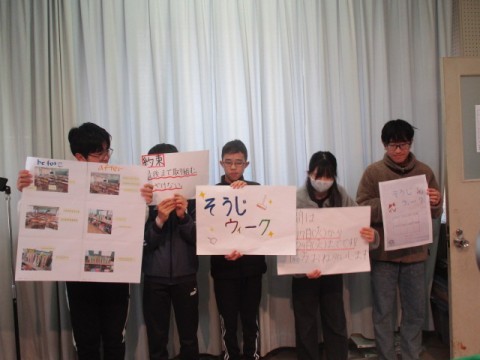 次に,6年生からの「そうじウィーク」のお知らせがありました。6年生を中心に新金岡小学校をもっときれいな学校にしてほしいです。