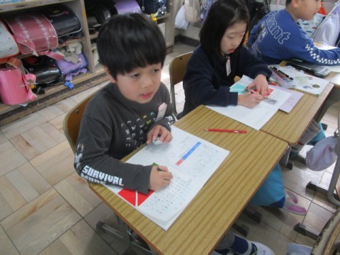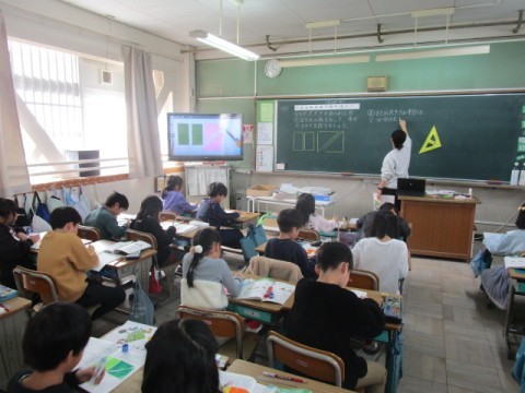 折り紙を半分に折って,その1つ分は…2分の1を操作しながら学びました。