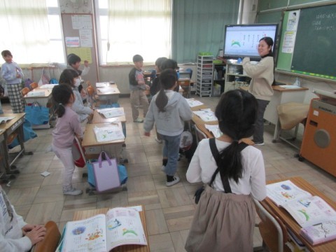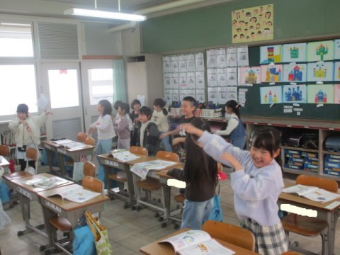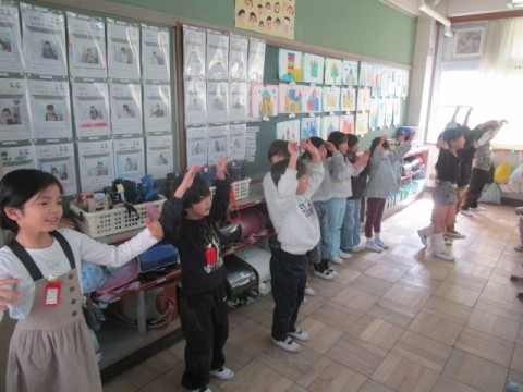 動きを考えたり,みんなで一緒にやることで,自然とノリノリで歌い踊っていました。