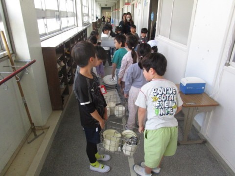 後片付けも協力してできました。これからも,給食が楽しみですね。